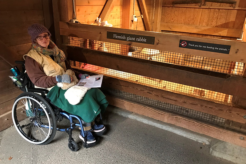 “I enjoy volunteering at the zoo, where I’m in the open air and can see a lot of things instead of being in a closed off area,” says Morgaine. “And many zoo visitors—especially kids and people with disabilities—feel more comfortable when I’m speaking to them because I’m on their level in my wheelchair. Kids ask questions about my chair too, which helps them better understand my experience.”