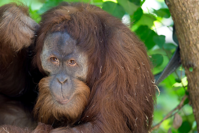 Largest of the orangutans, Heran is distinguished by his large cheek pads and throat pouch